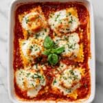 Keywords: baked ravioli, lazy lasagna, easy dinner, cheesy pasta, frozen ravioli recipe, Italian comfort food