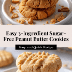 Keywords: sugar free peanut butter cookies, low sugar cookies, diabetic friendly cookies, 3 ingredient cookies, easy peanut butter cookies, sugar alternative dessert