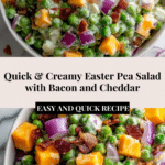 Keywords: pea salad, Easter salad, creamy pea salad, bacon salad, spring side dish, potluck salad, quick salad, easy pea salad, cheddar cheese salad