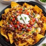 - Garnish and Serve: Transfer the nachos to a serving platter. Garnish with fresh cilantro and additional jalapeños if desired. Serve immediately with optional sour cream, guacamole, salsa, or pico de gallo.