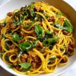 This Asian-Style Ground Beef Spaghetti is a quick and flavorful twist on a classic pasta dish. Combining savory ground beef with aromatic garlic, ginger, and a spicy soy-based sauce, it’s perfect for a satisfying weeknight dinner.