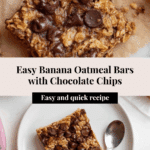 Keywords: banana oatmeal bars, healthy snack, breakfast bars, baked oatmeal bars, chocolate chip bars