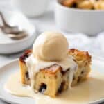 - Serve: Spoon the warm bread pudding into individual dessert plates and generously drizzle with the warm vanilla sauce.