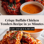 Crispy, flavorful Buffalo Chicken Tenders coated in a spicy homemade buffalo sauce, perfect for a snack, appetizer, or casual meal. These tenders are breaded and fried to golden perfection, then tossed in a tangy and buttery hot sauce mixture for a delicious and irresistible dish.