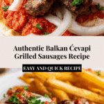 Ćevapi are flavorful Balkan grilled sausages made with a blend of ground beef and lamb, seasoned simply to highlight the meat’s natural taste. Perfect for summer barbecues or casual meals, they pair wonderfully with warm flatbreads and tangy ajvar relish.