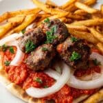 Ćevapi are flavorful Balkan grilled sausages made with a blend of ground beef and lamb, seasoned simply to highlight the meat’s natural taste. Perfect for summer barbecues or casual meals, they pair wonderfully with warm flatbreads and tangy ajvar relish.