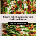 Cheesy Baked Asparagus with Gruyere, garlic, and bacon is a delicious and easy side dish that combines tender asparagus with savory flavors. It’s perfect for a weeknight dinner or a special occasion and guaranteed to please cheese and bacon lovers alike.