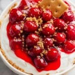 Keywords: cherry cheesecake dip, no-bake cheesecake dip, party dip, dessert dip, cream cheese dip, cherry dip, graham cracker dip