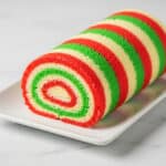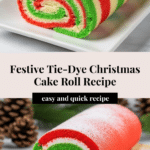 Keywords: Christmas cake roll, tie dye cake, holiday dessert, jelly roll, festive cake, vanilla cake roll, colored cake batter, easy Christmas dessert