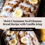 Keywords: banana bread, cinnamon swirl, cinnamon sugar, vanilla drizzle, moist banana bread, breakfast bread, easy baking, homemade banana bread, cinnamon swirl loaf