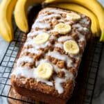 Keywords: banana bread, cinnamon swirl, cinnamon sugar, vanilla drizzle, moist banana bread, breakfast bread, easy baking, homemade banana bread, cinnamon swirl loaf