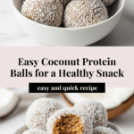 Keywords: Coconut Protein Balls, no bake protein balls, healthy snacks, energy bites, gluten-free snacks, high protein snacks, easy protein balls