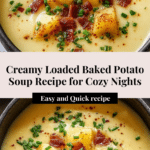 This comforting loaded baked potato soup is perfect for cozy nights, featuring tender potatoes simmered in flavorful broth, blended to a creamy texture, and enriched with sharp cheddar, sour cream, and bacon garnishes. It’s a hearty and satisfying dish ideal for a warming meal.