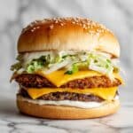 This Copycat McDonald’s Big Mac recipe recreates the iconic fast-food burger at home with a homemade Big Mac sauce, perfectly seasoned beef patties, and classic toppings layered between three sesame seed buns. Enjoy the authentic taste and texture of the famous Big Mac with fresh ingredients and simple cooking techniques.