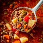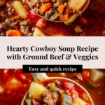 Keywords: Cowboy soup, beef soup, hearty soup, easy soup recipe, ground beef soup, vegetable soup, one-pot meal