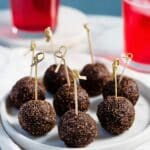 - Step 9: Place the coated balls on a plate, cover, and chill until needed. Add toothpicks before serving.