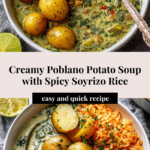 PrintCreamy Poblano Potato Soup with Spicy Soyrizo Rice Recipe
