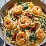 PrintCreamy Tuscan Shrimp Linguine Recipe