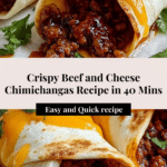 Crispy beef and cheese chimichangas are a delicious Tex-Mex treat that’s perfect for family dinners or casual gatherings. These deep-fried or baked tortillas are stuffed with flavorful ground beef, beans, and melted cheese, creating a satisfying and comforting meal.
