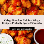 - Serve: Plate the crispy boneless chicken wings and serve immediately with your favorite dipping sauce for a perfect appetizer or snack.