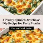 Keywords: spinach artichoke dip, creamy dip, party appetizer, baked dip, New Year’s Eve recipe