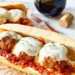 Store leftover meatballs and sauce in an airtight container in the refrigerator for 3 to 4 days. For longer storage, freeze for up to 3 to 4 months. To reheat, thaw in the refrigerator and warm in the microwave or on the stovetop. Assemble sandwiches just before serving to keep the bread from getting soggy.