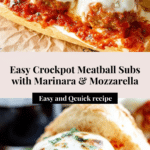 These Crockpot Meatball Subs feature juicy slow cooker meatballs simmered in a rich homemade marinara sauce, served on crusty baguette or ciabatta rolls with melted mozzarella and Romano cheese for a comforting and hearty Italian-American meal.