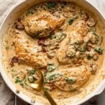 - Combine Chicken and Mushrooms: Return the chicken breasts and mushrooms to the pan, coating them fully with the creamy sauce. Heat together for about 1 minute.