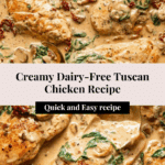 This Dairy-Free Tuscan Chicken is a creamy, flavorful dish perfect for those avoiding dairy but craving rich, comforting meals. Made with a luscious cashew-based sauce, tender chicken, and fresh spinach, it’s a delightful dinner option that’s both satisfying and easy to prepare.