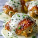Tender, juicy chicken breasts wrapped in flaky crescent dough, baked to golden perfection and topped with a rich, creamy garlic Parmesan sauce. This comforting and flavorful dinner is quick to prepare, taking just 35 minutes from start to finish, making it perfect for a busy weeknight or a special occasion.