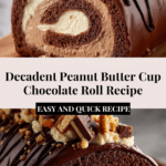 This Decadent Peanut Butter Cup Chocolate Roll is a blissful treat combining a moist cocoa sponge cake rolled with a creamy peanut butter filling and topped with a rich chocolate ganache. Perfect for chocolate and peanut butter lovers looking for an indulgent dessert that’s both visually stunning and deliciously satisfying.