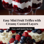 Delightful Mini Trifles with Fresh Fruits and Cream are a classic layered dessert perfect for any occasion. Combining soft sponge fingers, creamy custard, fresh berries, and rich jelly, this treat offers a perfect balance of flavors and textures. Topped with whipped cream and garnishes, these mini trifles are both beautiful and delicious.