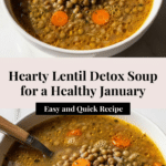 This Filling Detox Soup is a wholesome and comforting meal perfect for a January reset. Packed with nutrient-rich lentils, carrots, and aromatic onions and garlic, it offers a hearty yet light dish that supports detoxification and promotes warmth during colder months.