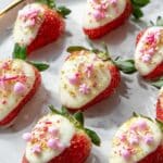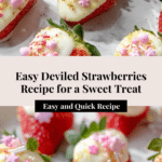 Delightfully sweet and tangy Deviled Strawberries are a creative twist on classic deviled appetizers, featuring fresh strawberries filled with a zesty whipped cream cheese mixture, topped with crunchy graham cracker crumbs and colorful sprinkles. This no-cook dessert is perfect for parties, gatherings, or a fun family treat.