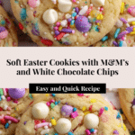 These festive Easter Cookies combine colorful M&M’s, white chocolate chips, and pastel sprinkles to create soft, chewy cookies perfect for springtime celebrations. With a tender crumb and a delightful mix of textures, they are easy to prepare and ideal for sharing during the holiday season.
