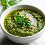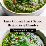 This Easy Chimichurri Sauce recipe is a vibrant and flavorful green sauce made with fresh parsley, cilantro, garlic, olive oil, and tangy red wine vinegar. Blended quickly in a food processor, this versatile condiment is perfect for drizzling over grilled meats, vegetables, or using as a marinade. Ready in just 5 minutes, it’s a fresh, zesty addition to any meal.