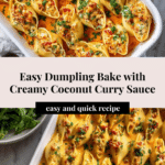 This Easy Dumpling Bake is a flavorful and comforting dish that comes together in just 30 minutes. Featuring tender dumplings simmered in a creamy coconut curry sauce with fresh greens, it’s perfect for a quick weeknight dinner or a casual meal with friends.