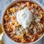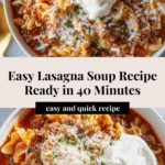 This Easy Lasagna Soup recipe delivers all the comforting flavors of classic lasagna in a hearty, delicious soup. Featuring browned ground beef, a blend of Italian herbs, crushed tomatoes, tender pasta, and optional creamy ricotta and Parmesan cheese toppings, this soup comes together quickly on the stovetop, making it a perfect weeknight meal. It’s a one-pot wonder that tastes like your favorite lasagna but with less fuss and more warmth.