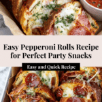These Easy Pepperoni Rolls are a crowd-pleasing appetizer or snack featuring soft, homemade-style bread dough rolled with savory pepperoni, Italian seasoning, and a blend of mozzarella and parmesan cheeses. Baked to golden perfection and brushed with garlic butter, they are served warm alongside marinara sauce for dipping. Perfect for parties, game days, or casual gatherings, these pepperoni rolls combine comforting flavors with simple preparation to wow your guests every time.