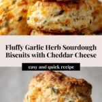 Keywords: sourdough biscuits, garlic herb biscuits, cheddar biscuits, flaky biscuits, sourdough discard recipe, homemade biscuits, savory biscuits, herb cheddar biscuits