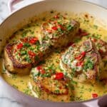 If you’re looking for a weeknight dinner that feels special but doesn’t take hours, these Garlic Marry Me Pork Chops are perfect. They feature tender pork chops in a creamy sun-dried tomato and Parmesan sauce with fresh basil. Ready in under 30 minutes, this dish delivers restaurant-quality flavor with minimal effort.