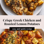 Keywords: Greek chicken recipe, roasted chicken thighs, lemon oregano chicken, roasted potatoes, Mediterranean chicken dish