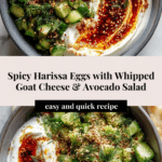 Keywords: harissa eggs, whipped goat cheese, avocado salad, chili butter, Mediterranean breakfast, spicy eggs, brunch recipe