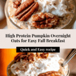 Keywords: pumpkin overnight oats, high protein breakfast, healthy fall breakfast, pumpkin puree oats, easy overnight oats