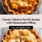 Keywords: chicken pot pie, homemade chicken pie, comfort food, savory pie, poultry dish, flaky pie crust, family dinner