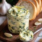 Store garlic butter in an airtight container in the refrigerator for up to two weeks. For longer storage, freeze the butter for up to three months. When ready to use, thaw in the refrigerator or at room temperature until spreadable. You can slice chilled logs directly for portion-controlled servings.