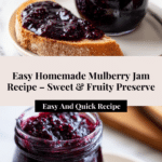 This homemade mulberry jam recipe captures the sweet, nostalgic flavor of fresh mulberries in a simple, easy-to-follow preserve. Made with just five ingredients—mulberries, sugar, lemon juice, nutmeg, and liquid pectin—this jam sets perfectly and can be enjoyed year-round. Perfect for spreading on toast, mixing into yogurt, or gifting to friends, this jam is a delicious way to savor the taste of summer berries anytime.