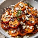 - Top: Evenly sprinkle crumbled feta cheese over the warm sweet potato rounds to add a salty, creamy element.