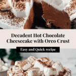 Keywords: Hot Chocolate Cheesecake, Oreo crust cheesecake, chocolate dessert, creamy cheesecake, whipped cream topping
