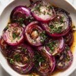 Hot Honey Pickled Red Onions are a tangy, sweet, and spicy condiment that adds a vibrant punch to salads, tacos, sandwiches, and more. Thinly sliced red onions are soaked in a warm mixture of apple cider vinegar, honey, and spices, creating a perfect balance of flavors with a gentle heat from red pepper flakes. This easy-to-make recipe takes just 15 minutes to prepare, with pickling time enhancing the depth of taste.